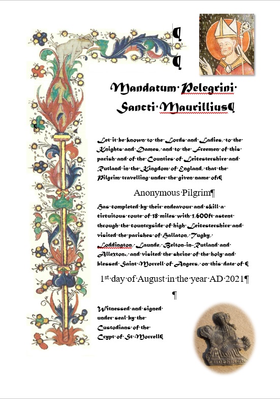 St Morrell's Round is a circular pilgrimage of about 18 miles which is inspired by the medieval pilgrimages made to St Morrell's Chapel on the hillside near Hallaton. The pilgrimage does not claim to follow any previous route but instead visits sites where you can still see things that pilgrim travellers would have seen in the 14th Century.